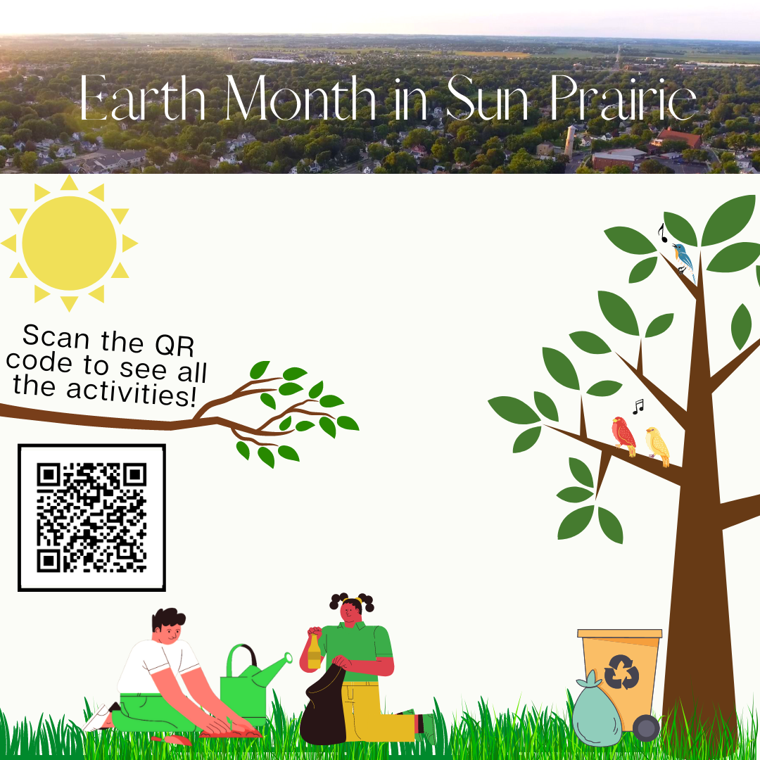 Earth Month is intended to bring the entire community together and collectively take steps in making Sun Prairie a more sustainable place for all. This has been made possible by collaboration from city staff Administration and the Parks, Recreation, and Forestry Department.