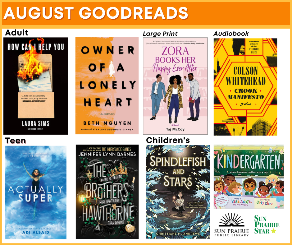Check out these new book recommendations from Sun Prairie Public Library staff! Visit LINKcat to place a hold, or stop in to the library. A full listing is published monthly in the Sun Prairie Star and is also available on our website.